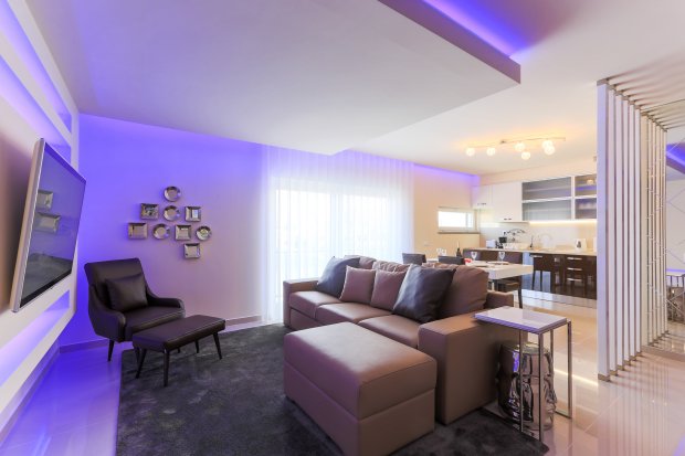 - Exclusive Newly Remodeled Luxury Design. We spared no expense to create a high standard of personal design. The living/dining room is well decorated with modern sofas, a dining table, and four chairs. Amazing color-changing lights create a homey and relaxed atmosphere, one that is both luxurious and intimate. The apartment has been newly remodeled throughout! Be among the first guests to enjoy this brand-new, exclusive environment!